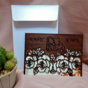 Unveil rustic elegance on your big day with our wooden wedding cards. Crafted for eco-conscious couples, these personalized keepsakes blend timeless charm with engraved details. Make your invitations a work of art, capturing the essence of your love in every grain